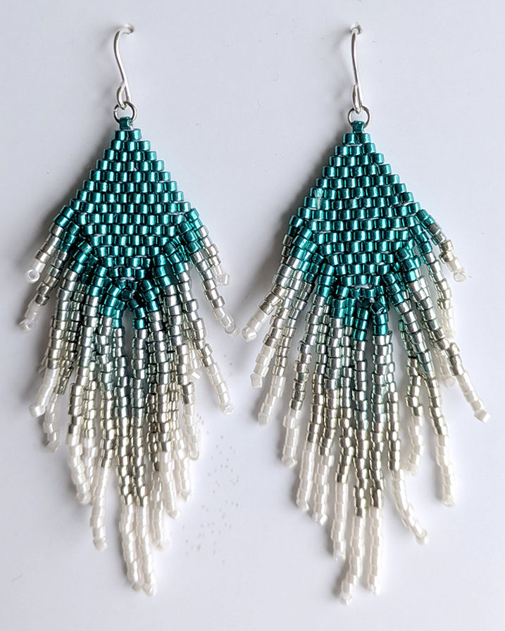 Boucles arc-en-ciel et laiton (écru - bleu clair)